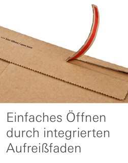 Stabile Universal-Versandverpackung braun mit den Abmessungen 300 x 210 x -100 mm mit Selbstklebeverschluss und integriertem Aufreißfaden.
